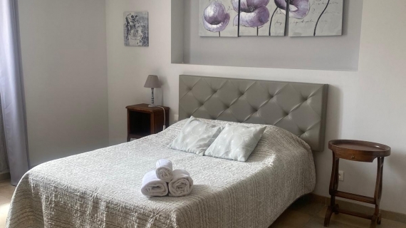 Ancienne maison des vendangeurs espagnols, ce gîte entièrement rénové offre une ambiance chaleureuse dans un décor soigné, avec ses pierres apparentes, ses poutres en bois et sa cheminée languedocienne.